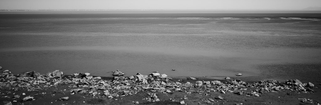 钱塘江这本画册的全部照片都是采用617相机拍摄的,这里顺带说一下,寇德卡是我非常喜欢的摄影家,尤其是寇德卡用617相机拍摄的画册我基本是能买到的都买了,另外我还有一套哈苏Xpan相机,用它拍摄了近万张照片,虽然回头看有意义的照片并不多,但这个过程对我拍摄宽幅照片确实起到了很好的锻炼作用,公认的用617相机拍摄作品是最难的,拍摄617规格的宽幅照片与拍摄标准画幅照片不同,有它自己独特的语言,画面的平衡感是需要特别重视的,很多场景用617相机拍摄难度其实是非常大的,但开阔的视野可以交代更多的环境,展现更多内容,让主题不那么突出,但又恰到好处,这也是我采用其拍摄钱塘江的重要原因,Xpan相机的画幅比例和617相机的画幅比例基本差不多,使用Xpan相机更加灵活机动,可以手持拍摄,便于拍摄出更有灵性的照片,我之所以没采用Xpan相机来拍摄钱塘江主要有两个原因,第一,希望在拍摄钱塘江时让自己慢下来,有更多的思考,以凝视和专注的姿态去拍摄这些作品,第二,617相机采用的是120胶卷,成像面积比采用135胶卷的Xpan相机成像面积大不少,这非常有利于我后期作品的输出质量,617相机虽然不适合手持拍摄,基本离不开三脚架,但更符合我慢和凝视的拍摄需求。
