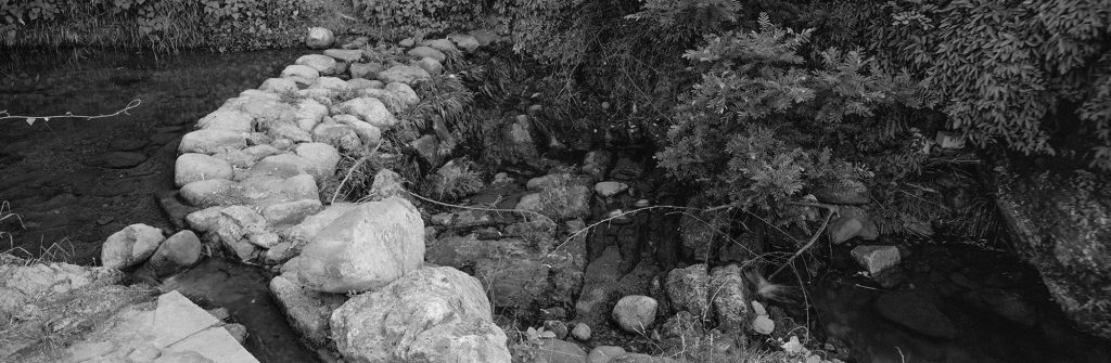 这是在龙门古镇附近拍摄的一张照片,这里居民90%以上为孙姓,是孙权的后人,我刚来的时候也拍摄了古镇的建筑等,但没有什么感觉,闲暇时我在古镇的外围转悠,发现了这条无名小溪。凹凹坑坑的石头路,我想也许孙权在这里也走过吧,而今孙权后人也走在这里;历史已经成为过去,唯有小路依旧,这里的水把旧朝的雨和今早淘米的水倒进同一条沟,流过去也流现在,古和今混成一股,拎不清哪截是史,哪截是日子。