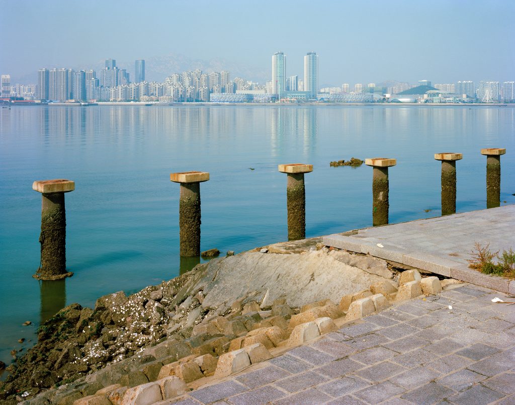2016年开始我用4×5大画幅照相机拍摄我的第二故乡青岛,尤其是近几年拍摄的青岛作品与以往发生了重大变化,这些作品有望明年出版画册与各位见面,这些作品今年5月在北京刘铮老师的蝴蝶效应艺术馆展出,这是刘铮老师开馆的第一个展览,也是我最新作品的一次非常重要的展览,由刘铮老师亲自策展,展览的题目叫《琴岛孤弦》,在这个题材的拍摄过程中我基本完全放弃了过去拍摄景观的思路,那些徳式建筑、老街道,红瓦绿树不再是我要表达的内容,我把目光投向了以西海岸新区为主的城乡结合处,在那里寻找城市的发展与传统渔业、自然之间的矛盾与冲突,以隐喻的方式提醒人们发展与保护的重要性,那些已经被发展抹去的永恒已经成为历史,新的永恒在被抹去永恒的伤疤上快速成长,又成为了新的永恒。