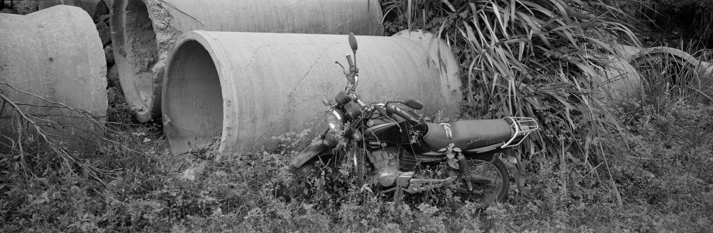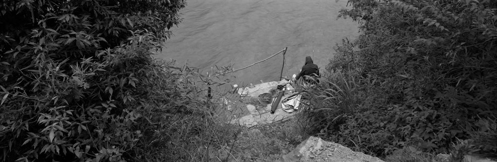 这四张照片拍摄于同一个地点,位于杭州市桐庐县富春江边的一个废弃煤厂,煤矿已经成立历史。空码头伫立,在这里我没找到黄公望《富春山居图》的感觉,但这里仿佛隐约还能透出古人山水的余韵。垂钓者的鱼线垂入水中,仿佛伸入《富春山居图》的留白,在静止的画面里搅动出片刻的当代涟漪。废弃的摩托车倒在草丛中,像一块被误贴进古画的现代碎片,突兀却不违和。煤已尽,山未改,江仍在流,黑白灰构成为了时间的过渡层,也是摄影镜头下最真实的现场——过去不是背景,当下也非主角,它们在同在这里重叠、交融,构成一幅被时间漂洗过的诗意景观。
