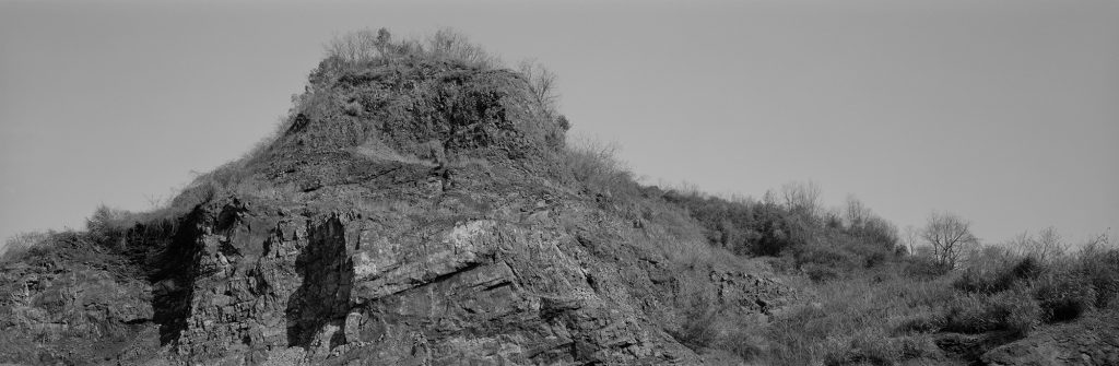 换到山顶俯瞰,拍摄了第二张照片,绍兴城被一圈圈采石遗坑环抱,像摊开的地质报告:旧伤疤与新楼盘互为镜像。曾经的采石声换成了电信塔的信号,崭新的楼房拔地而起,制造出一种“对称”的假象——人类先凿山,再依山建城,如今用高楼回填视觉空缺。城池与石宕互为背景,也互为废墟:山被挖空成为城市地基,城市又在石的伤口上继续生长,过去不是被掩埋,而是被浇筑进新的水泥躯体。我们不再只是“看山”,而是在修补、售卖并再次消费自己曾造成的空洞;每一次填补,都是新一轮开采的开始。